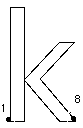 The grid-fitting instructions for the H necessarily refer to the outline points that make up the glyph description. Figure 11 shows the upper case H outline along with the on-curve and off-curve points that define that outline. The instructions for this glyph follow. Each instruction is accompanied by an explanation of the work it does and, if relevant, an illustration of the points it affects or uses.The instructions begin with the x-direction, the default direction for the freedom and projection vectors.The work of instructing the glyph proceeds from left to right. Instructions80% in the y-direction follow.