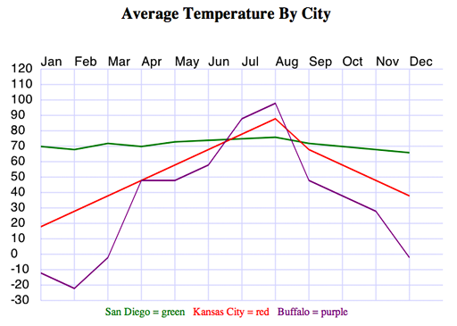 var kansasCty = [20, 30, 40, 50, 60, 70, 80, 90, 70, 60, 50, 40];