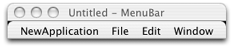 When you select Menu Bar or Main Window With Menu Bar, Interface Builder brings up a default menu bar as shown in Figure 2-2, which you can then populate with your menus and menu items.