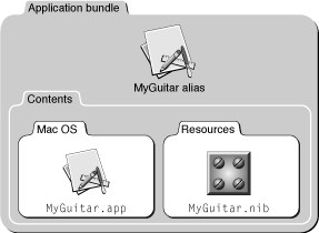 To make sure your application can find the nib file, you should place it in the Resources folder of your application’s bundle hierarchy, as shown in Figure 2-8. For information about creating application bundles, see Mac Technology Overview.