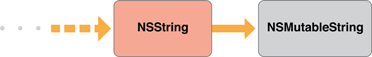 In the case of Objective-C string classes, the class description for NSMutableString specifies that the class inherits from NSString, as shown in Figure 1-2. All of the functionality provided by NSString is available in NSMutableString, such as querying specific characters or requesting new uppercase strings, but NSMutableString adds methods that allow you to append, insert, replace or delete substrings and individual characters.