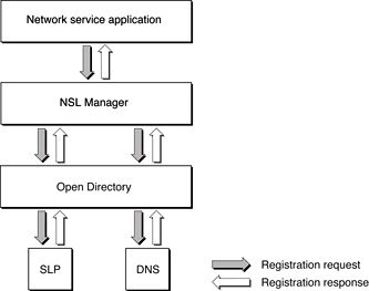 NSLStartServicesLookupfunction.The Network Services Location Manager receives the request and passes it to Open Directory, which passes the request to the appropriate Open Directory plug-in.