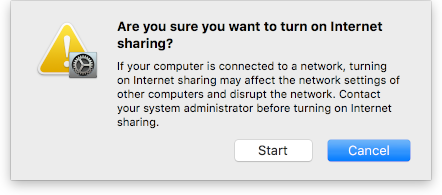 Once sharing is active, you should see a green status light and a label that says Internet Sharing: On. In the Wi-Fi menu, you will also see a small, faint arrow pointing up, indicating that Internet Sharing is enabled. You now have an IPv6 NAT64 network and can connect to it from other devices in order to test your app.