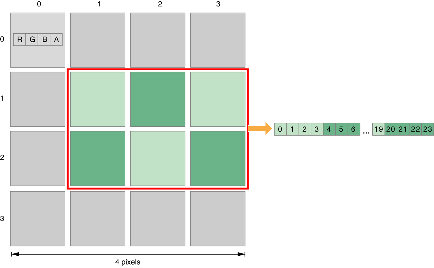 As with the OpenCL standard clEnqueueCopyBufferRect function, copying begins at the source offset (src_origin) and destination offset (dst_origin). Each byte of the region's width is copied from the source offset to the destination offset. After each width has been copied, the source and destination offsets are incremented by their respective source and destination row pitches.