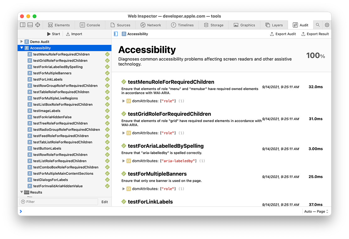 Apple has brought its expertise in development tools to the web. Safari includes Web Inspector, a powerful tool that makes it easy to modify, debug, and optimize websites for peak performance and compatibility on both platforms. And with Responsive Design Mode, you can preview your web pages in various screen sizes, orientations, and resolutions. Access these tools by enabling the Develop menu in Safari’s Advanced preferences.